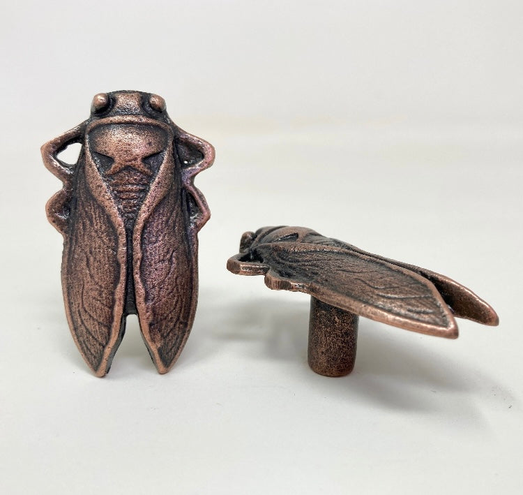 Wonderful cicada bug drawer knob in antique copper with great detail...bring the outside in!