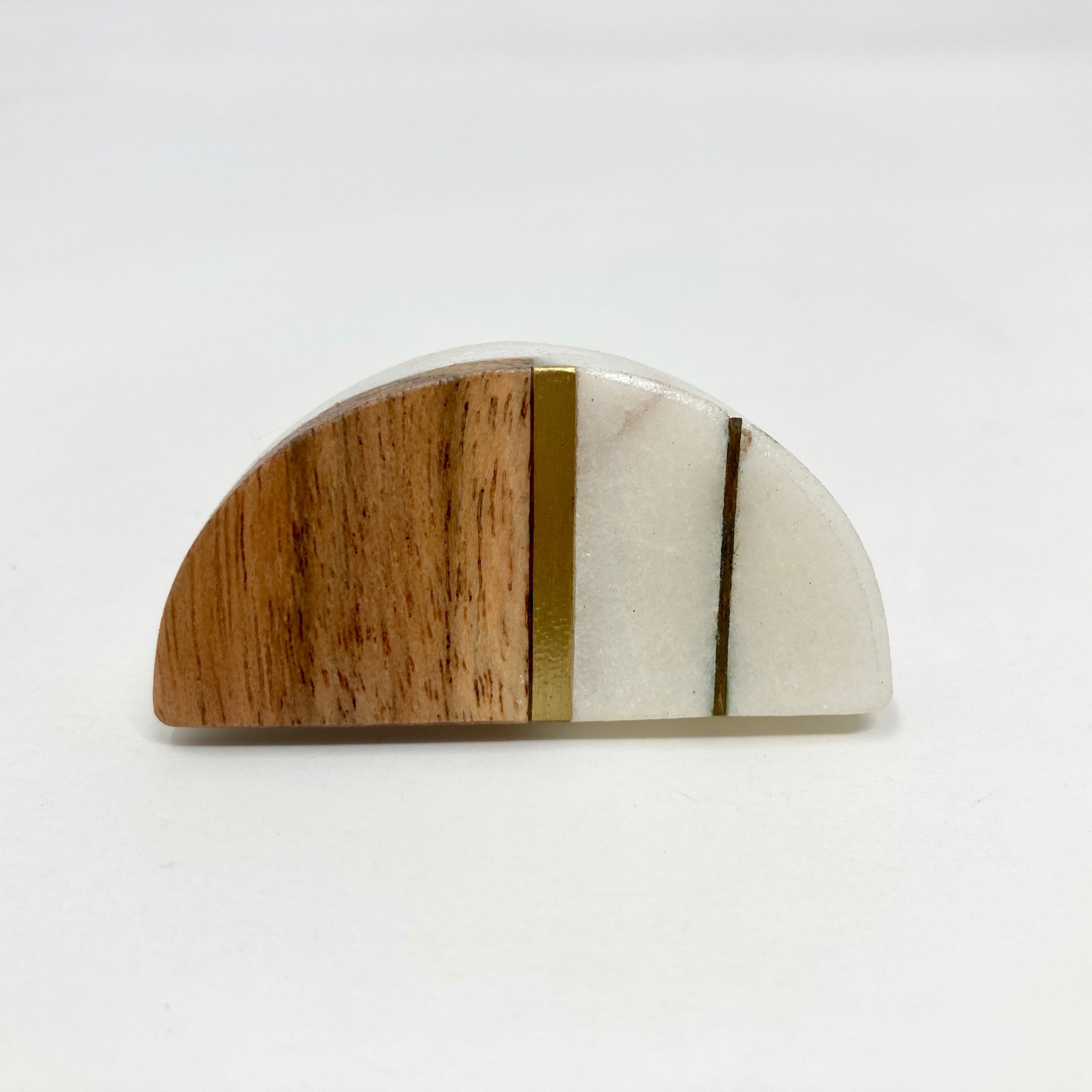 Half Moon Marble & Wood Knob with Brass Strips