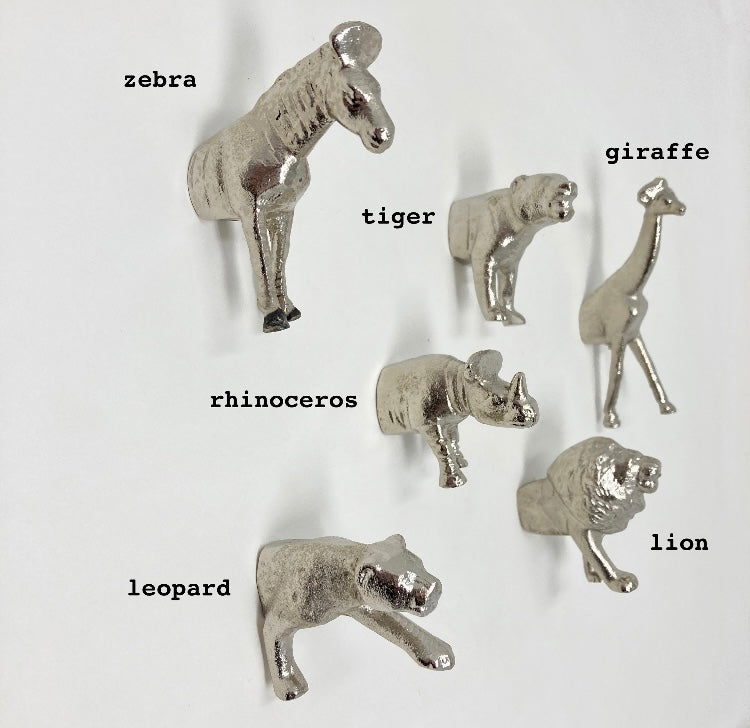 Safari silver animal drawer knobs available as a set of 6 or individual knobs