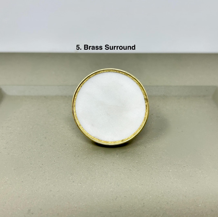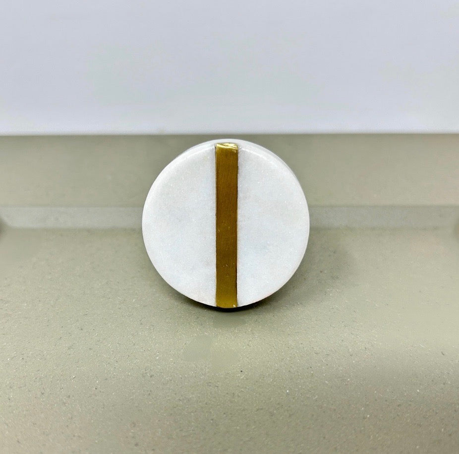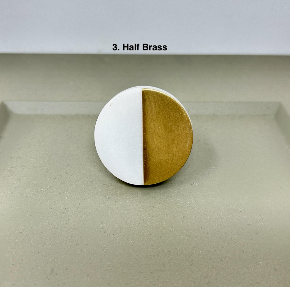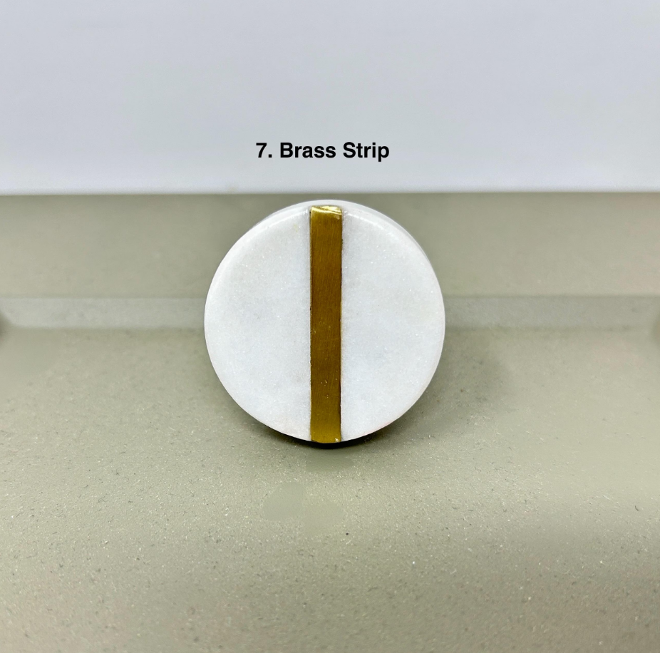 Elevate your furniture with these round stone and brass drawer knobs. A timeless blend of natural marble and solid brass. Designed to add a refined, modern touch, these knob are perfect for kitchen cabinets, drawers, dressers, and wardrobes. Each piece showcases the unique beauty of natural stone, making every knob truly one of a kind.