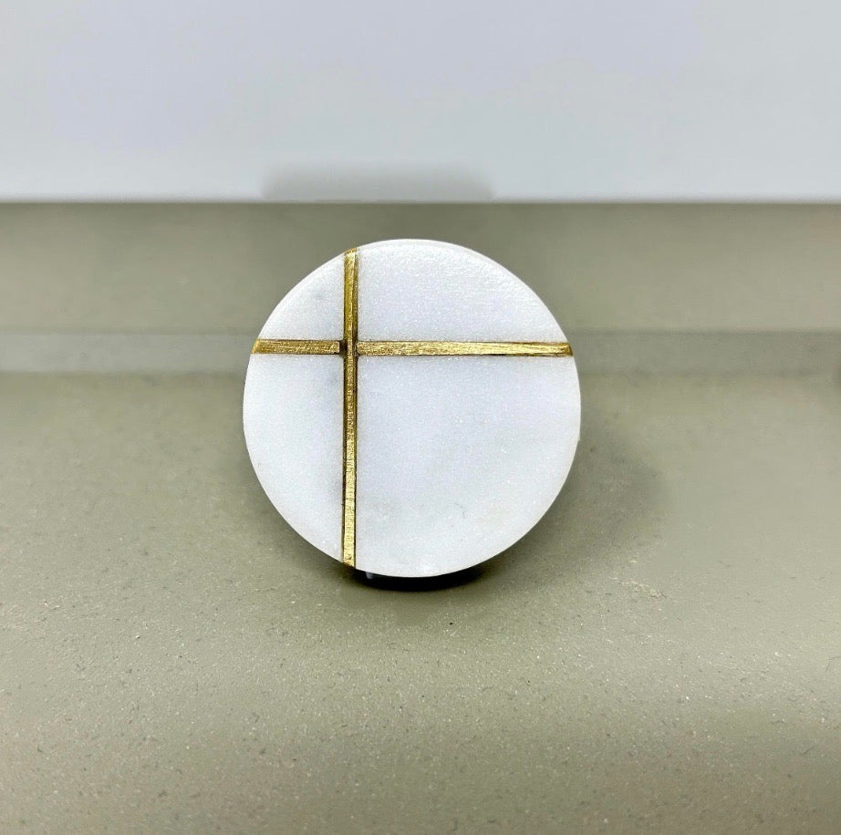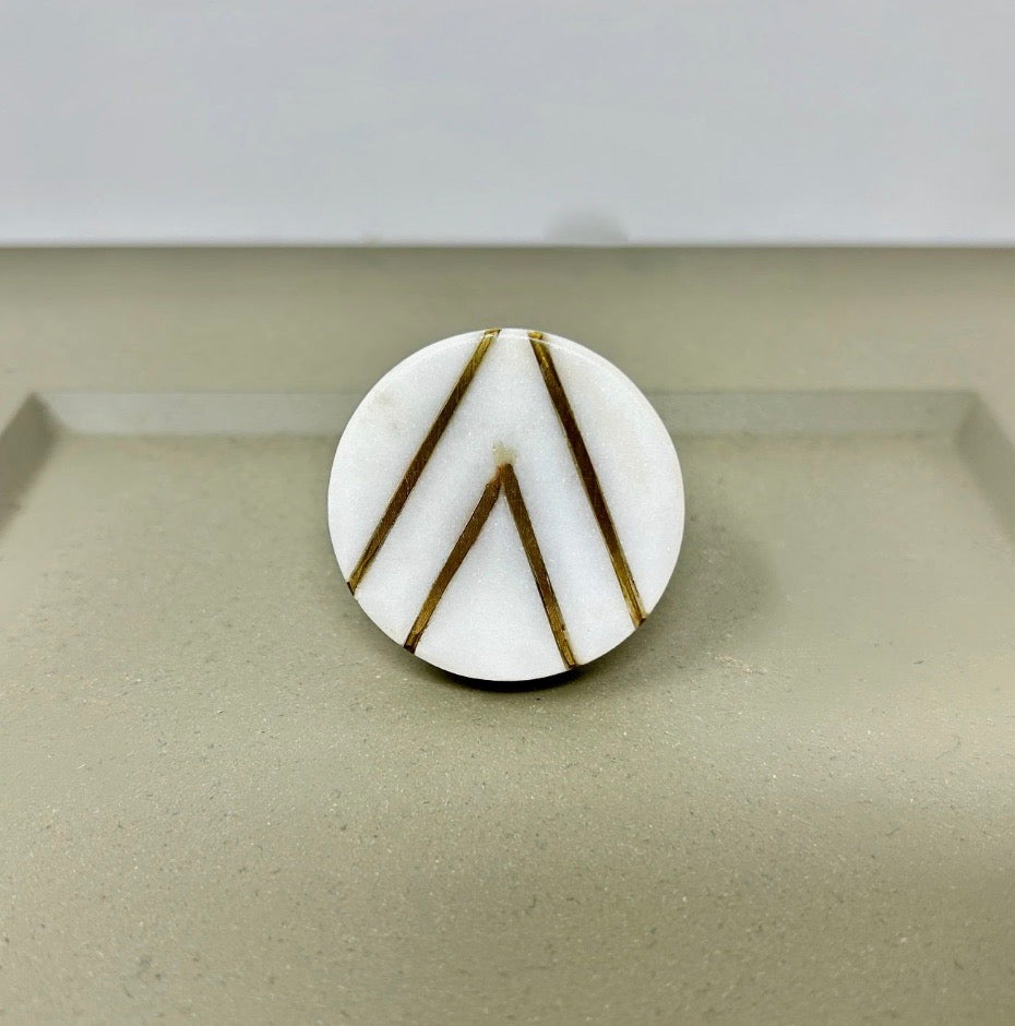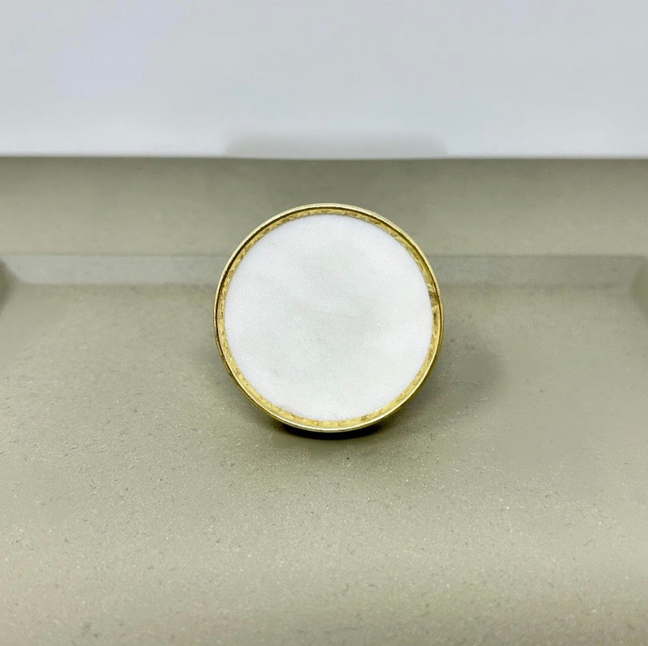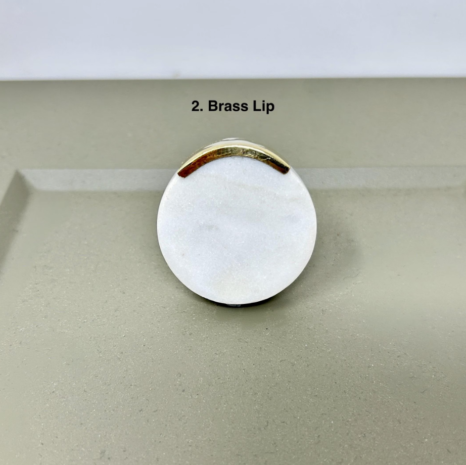 Elevate your furniture with these round stone and brass drawer knobs. A timeless blend of natural marble and solid brass. Designed to add a refined, modern touch, these knob are perfect for kitchen cabinets, drawers, dressers, and wardrobes. Each piece showcases the unique beauty of natural stone, making every knob truly one of a kind.