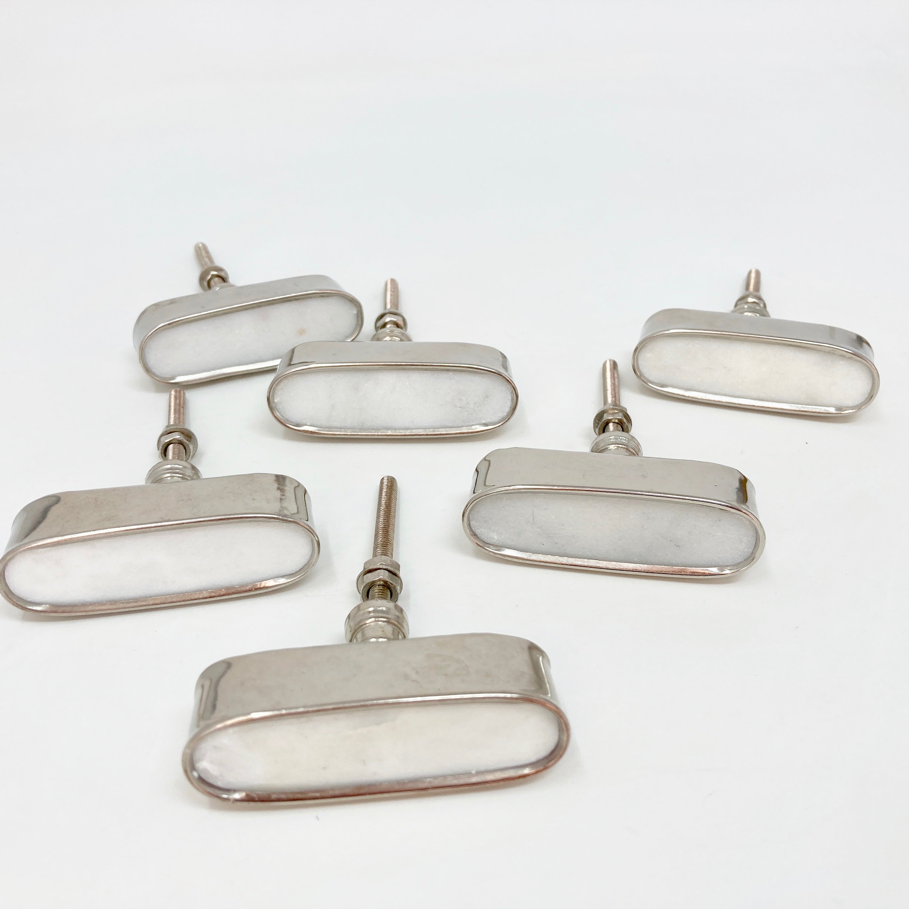 Silver oval brass and marble stone knob